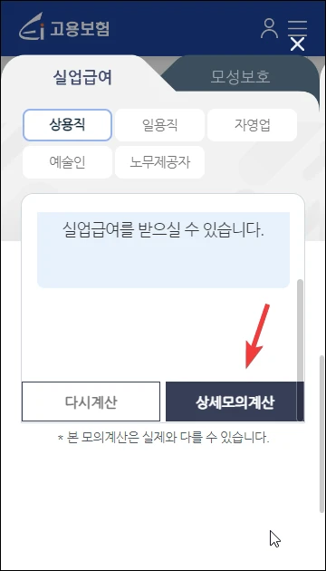 다만 이 결과는 실제를 보장하는 것은 아닌데요. 좀 더 디테일하게 확인하고 싶다면, '상세 모의계산' 버튼을 눌러서 조회해 봐도 됩니다.