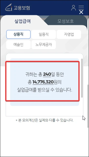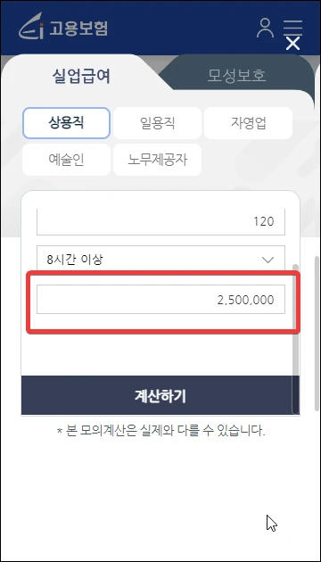 자신이 실업급여 대상이 되는지, 혹은 얼마나 되는 금액을 얼마 동안 받을 수 있는지 아주 간단하게 모의계산 해볼 수 있습니다.