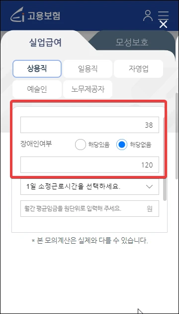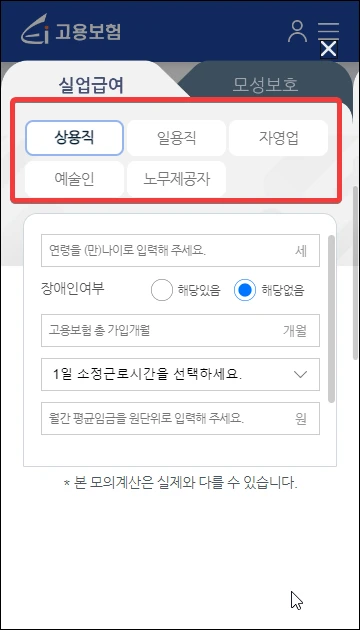 2. 실업급여 모의계산 방법